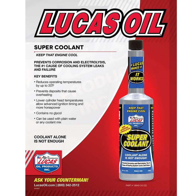 کولانت لوکاس یکی از قوی ترین و بهترین کولانت های دنیا میباشد، دارای فرمولاسیون پیشرفتهای است که شامل مهارکنندههایی با ماندگاری بالا در برابر زنگ زدگی، خوردگی و افزایش دما میباشد و دارای بالاترین تاییدیههای استانداردها در زمینه تولید کولانت است، در شرایط کشور ما قطعا میتواند از یخ زدگی سیستم خنک کننده جلوگیری کند، این مایع از فرمولاسیون جدید و پیشرفته با پایه اتیلن گلیکول بهره میبرد و علاوه بر پایین بودن نقطه انجماد خاصیت ضد خوردگی و ضد زنگ را نیز دارا است، بدون استفاده از سیلیکات، این ضدیخ آمریکایی حداکثر محافظت و ماندگاری را فراهم میکند؛ علاوه بر این، ضدیخ و ضدجوش و کولانت لوکاس با مواد غیرفلزی سازگار بوده، بنابراین در افزایش طول عمر واشر و پوشش پمپ آب هم تاثیرگذار است. / فرمول منحصر فرمول منحصر به فرد ما از رسوباتی که می توانند باعث گرم شدن بیش از حد شوند جلوگیری می کند و ثابت شده است که دمای مایع خنک کننده را تا 20 درجه فارنهایت کاهش می دهد. از رسوباتی که می توانند باعث گرم شدن بیش از حد شوند جلوگیری می کند و ثابت شده است که دمای مایع خنک کننده را تا 20 درجه فارنهایت کاهش می دهد.